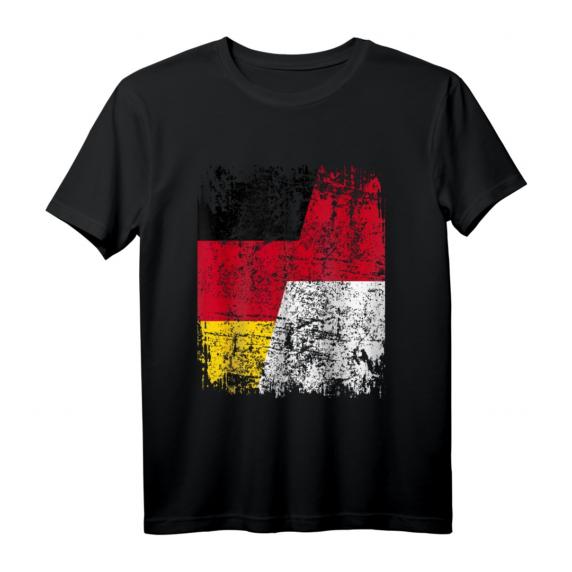 Indonesien Deutschland Flagge T-Shirt – Klassisch geschnitten, doppelt genähter Saum für Fans & Reiseliebhaber